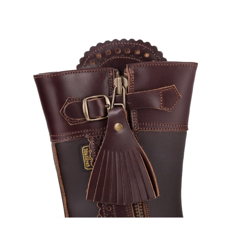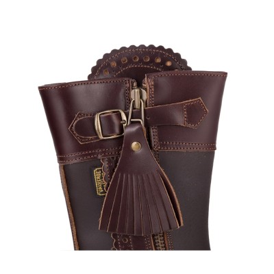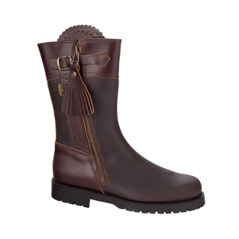 Bota de caza unisex de media caña, fabricada en cuero engrasado color castaña, con cremallera interior y acabados resistentes.